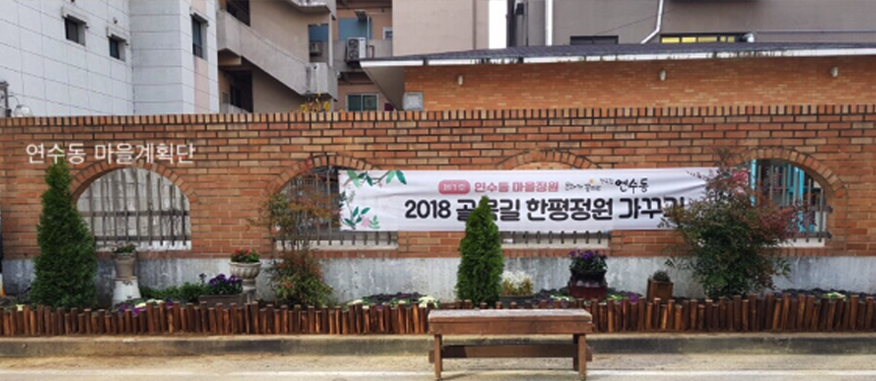 약 15년 전, 동네 할머니들이 가가호호 도장을 받아온 덕분에 지금껏 연수1동 통장으로 마을 일을 맡고 있는 권용희 활동가는 2018년 출범한 ‘연수동마을계획단’에 참여하게 됩니다. ‘문화가 꽃피는 행복연수’라는 슬로건 아래, 다양한 계층의 주민이 자발적으로 참여하는 주민 자치 활동의 기반을 만들기 위한 사업이었습니다. “여러 분과 중에 저는 환경팀이었어요. 당시 원룸촌에 쓰레기 분리배출 시설인 클린하우스가 있었는데 너무 지저분했어요. 그 문제를 해결하려고 저희가 ‘한 평 정원’이라는 것을 기획해서 행복복지센터에 제안서를 올렸죠. 바로 되지는 않았지. 관리가 안 되니 철거하라는 주민, 그래도 세금으로 설치한 건데 아깝다는 주민.....내 집만 깨끗하면 되는 겨. 남의 집 골목은 더럽든 말든(웃음). 그런데 마을 일이라는 게 주민이랑 공유가 되어야 순조롭게 진행이 돼요.”