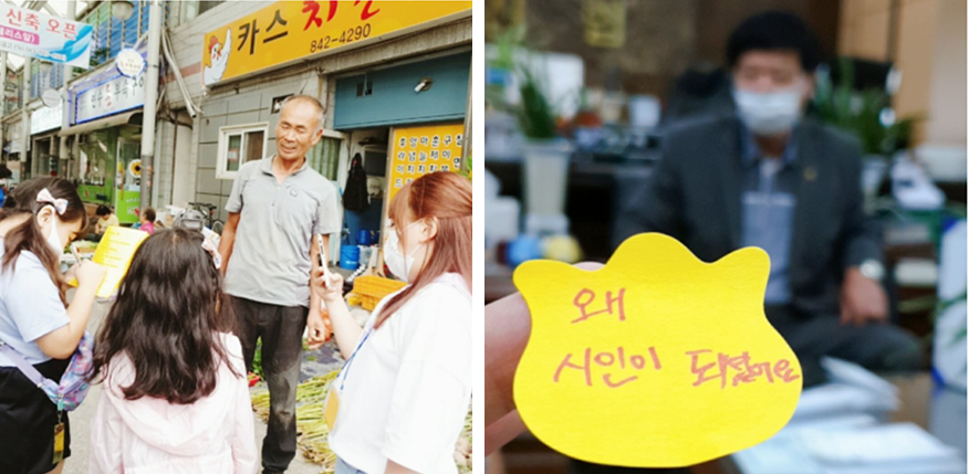 마을신문인 ‘연원마을’에 계명산, 남산, 탄금대 등 마을 역사이야기를 시리즈로 기고해주시던 김근수 할아버지가 편찮으시다는 소식을 듣고 할아버지를 위한 선물을 아이들이 준비하기도 했습니다. 할아버지가 그동안 기고한 글들을 모아 엮고, 네이버 지도를 출력해서 할아버지가 자주 가시는 곳, 우리랑 같이 가면 좋을 곳들을 체크한 후 지도를 보면서 할아버지 집을 찾아갔습니다. 할아버지는 낮잠 중이셔서 직접 만나지는 못하였지만 할아버지 글 속에 있던 작은 연못과 할머니를 좋아하는 강아지, 그리고 예쁜 꽃들과 나무들을 구경하고는 돌아왔지요.