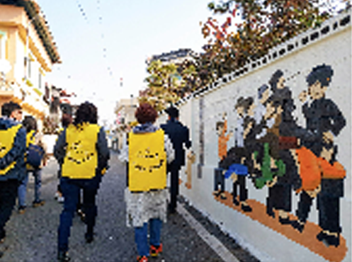 연수동의 첫 마을인 동수마루 옛길을 산책하며 30년 전에 있었던 태백공사, 옹기집, 성황사 그리고 어른들 이야기를 듣고, 주택 담벼락에 그려져 있는 옛놀이를 따라 딱지치기, 고무줄놀이, 말뚝박기도 왁자지껄 떠들며 골목놀이도 해본다. 이렇게 우리는 마을살이를 하고 있다.