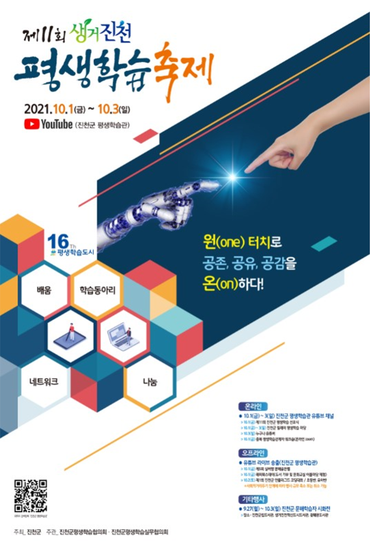 - 장 소 : 온라인 유튜브 채널(진천군 평생학습관), 오프라인(대강의실)