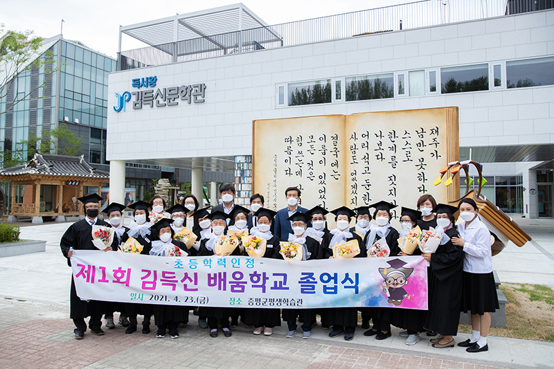 지난해 김득신 배움학교 첫 졸업식에서는 정봉희 문해교사의 김득신 배움학교 교육생 23명이 초등학력을 인정받았다. 배움의 한(恨)이 녹아내리는 자리인 졸업식에서는 학생들도 울고, 선생님도 울고, 보는 이들도 울었다. 낫 놓고 ‘ㄱ’자도 모르던 어르신들이 ‘이름을 쓰고 글을 읽게 되니 새로 태어난 기분이다. 포기하지 않도록 도와준 선생님 덕분이다.’라며 하나같이 감사함을 표현했다.