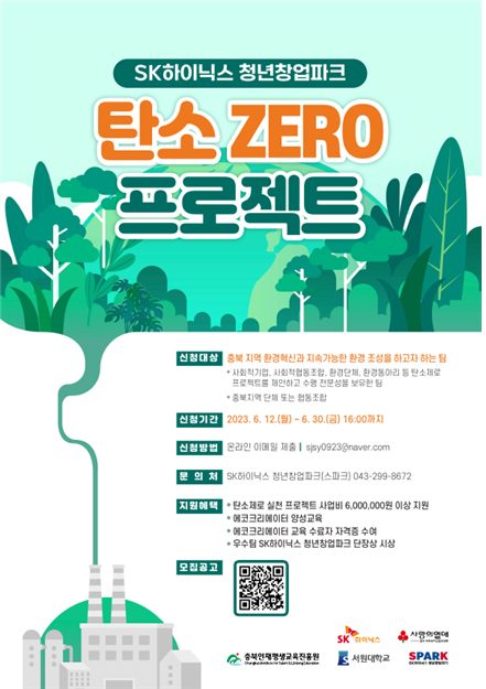 [사진=SK하이닉스 청년창업파크 탄소 ZERO 프로젝트 모집 포스터, 제공 : 서원대학교]>