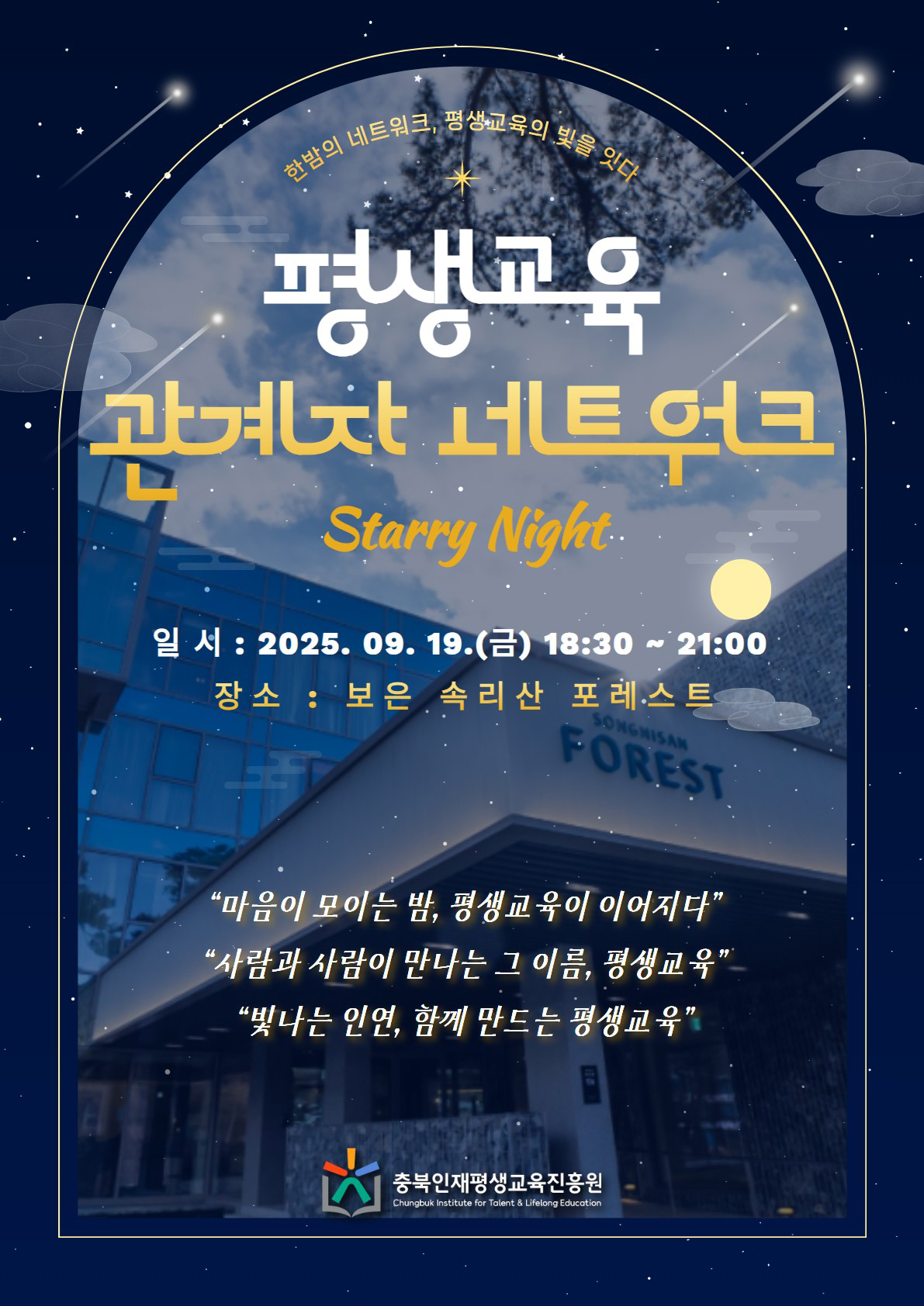 | 평생교육 관계자 네트워크 밤 | 18:30~21:00 | 속리산포레스트 연수동 지하1층 식당 및 세미나실 | |